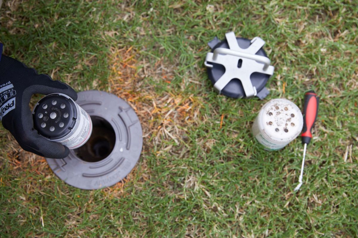Termite baiting is achieved through the positioning of ‘baiting stations’ that are spaced evenly about the yard, encircling your property. The baits themselves are about the size of a small takeaway coffee cup and sit in a tube which sits below the ground.